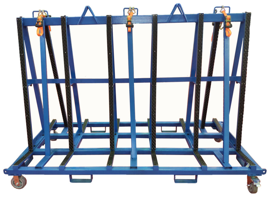 此設計用于廠區內外的板材運輸和儲存,支架表面覆蓋一層橡膠層,保護板材免于刮傷。